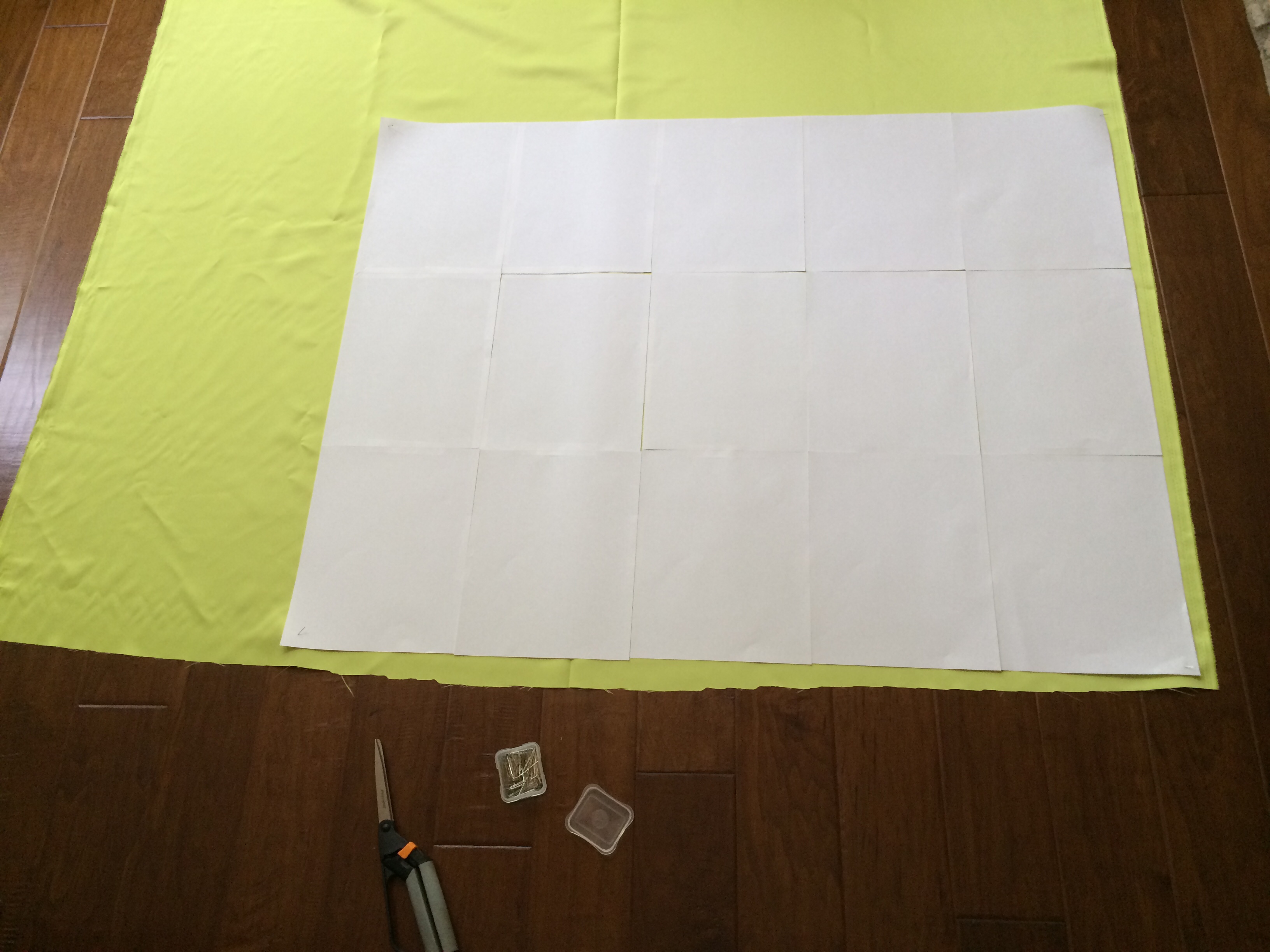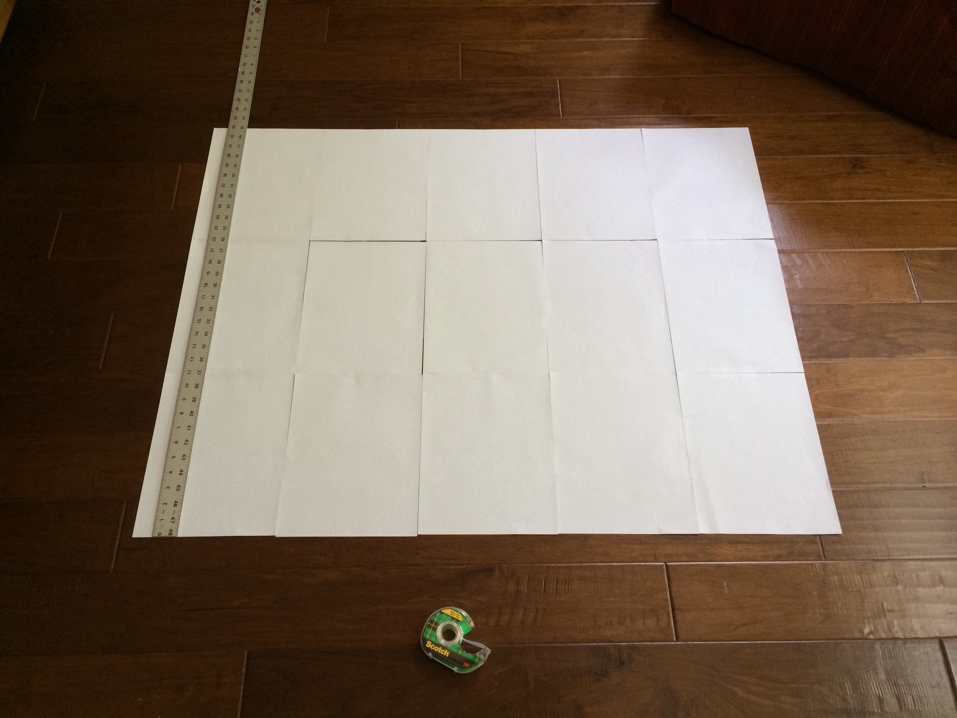 Now we need a pattern. I taped computer paper together like this: