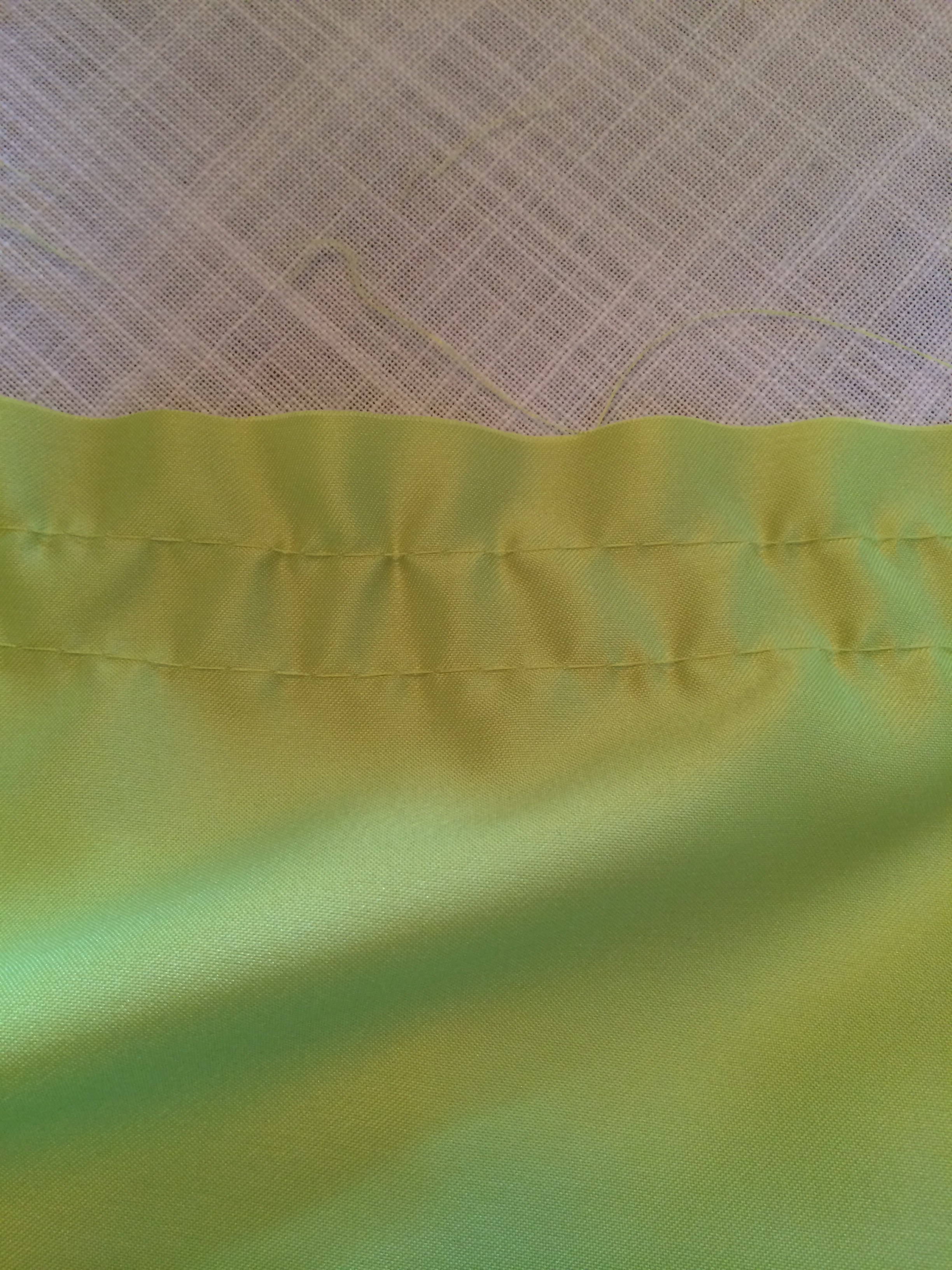 I like to do the front half and back half separately. To gather, make two rows of long stitches near the top of your fabric. It will look something like this…