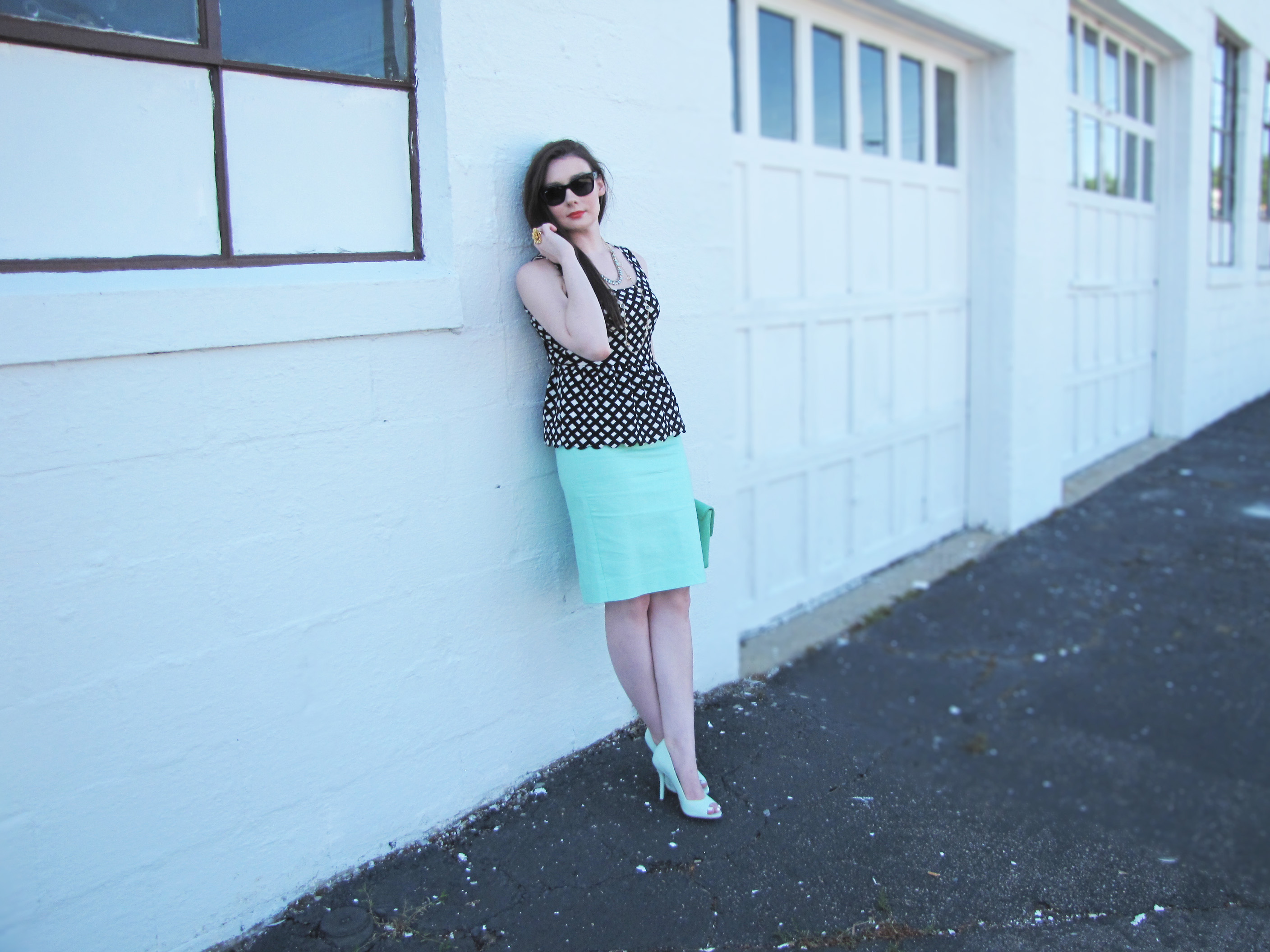 |skirt: J. Crew| |top: Anthropologie| |shoes: BCBGeneration| |nails: Essie polish in Mint Candy Apple| |watch: Marc by Marc Jacobs| |necklace: J. Crew| |sunglasses: kate spade|